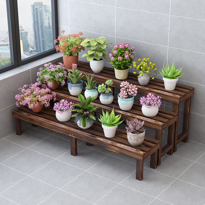 花架置物架多层碳化防腐木户外落地质室内阳台多肉绿萝花盆架