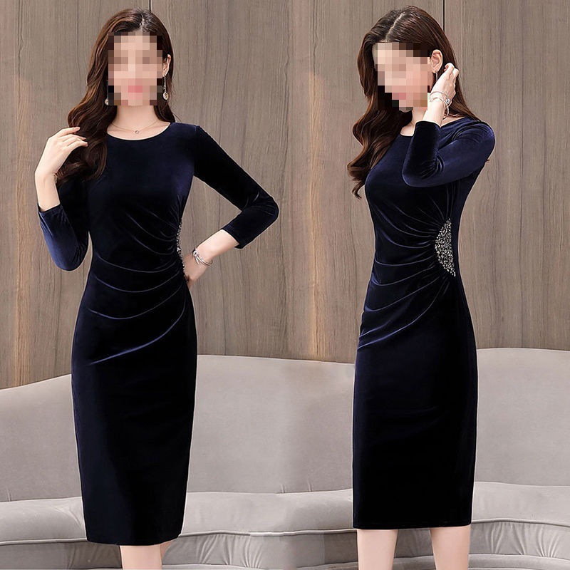 女士春装金丝绒新款气质女装长袖裙子旗袍改良版打底裙