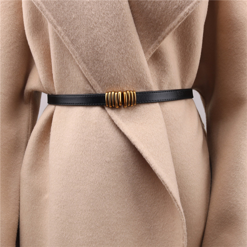 牛皮复古百搭金属扣毛衣腰带女连衣裙大衣装饰皮带细时尚收腰