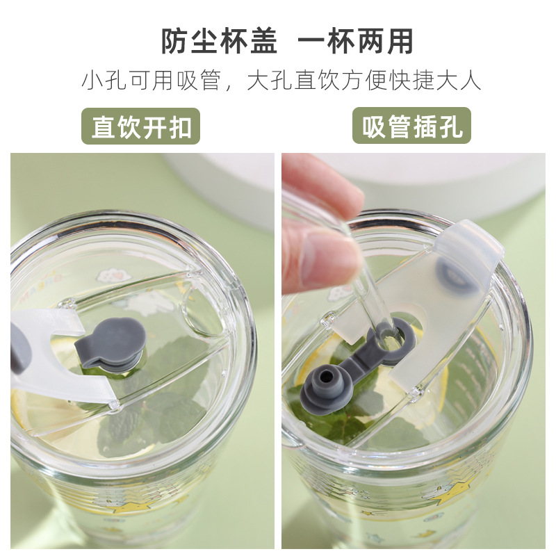 ins水杯女感玻璃杯子男生轻奢带吸管盖咖啡杯情侣家用高颜值