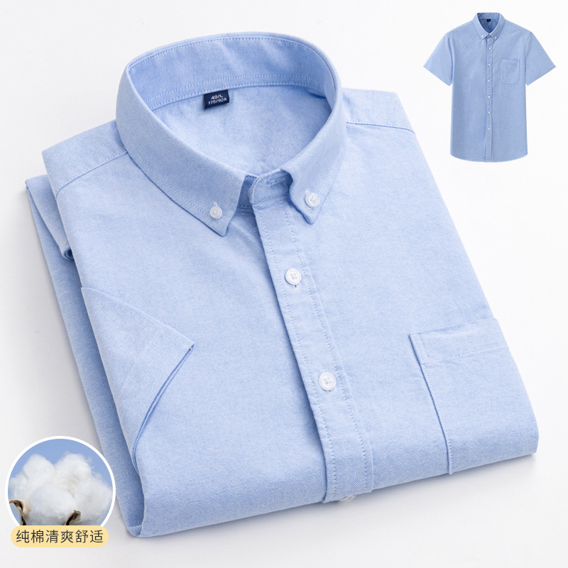 夏季新款纯棉竖条纹短袖衬衫男款牛津纺商务休闲全棉衬衣男装批发