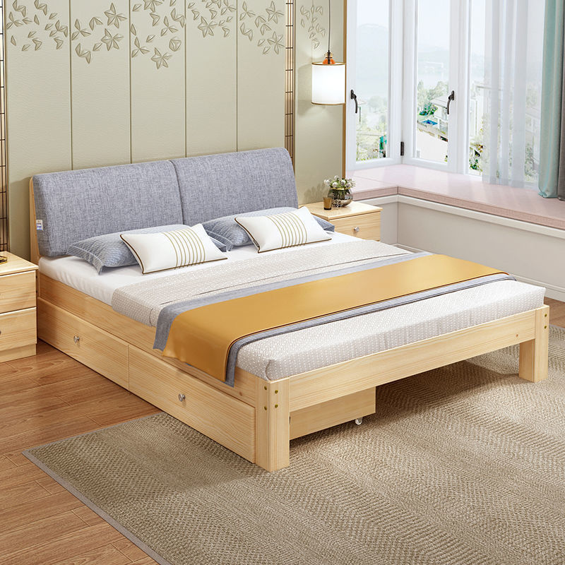 实木床现代简约2米双人1.8米大床单人床1.5米家用木板床1床1.2米