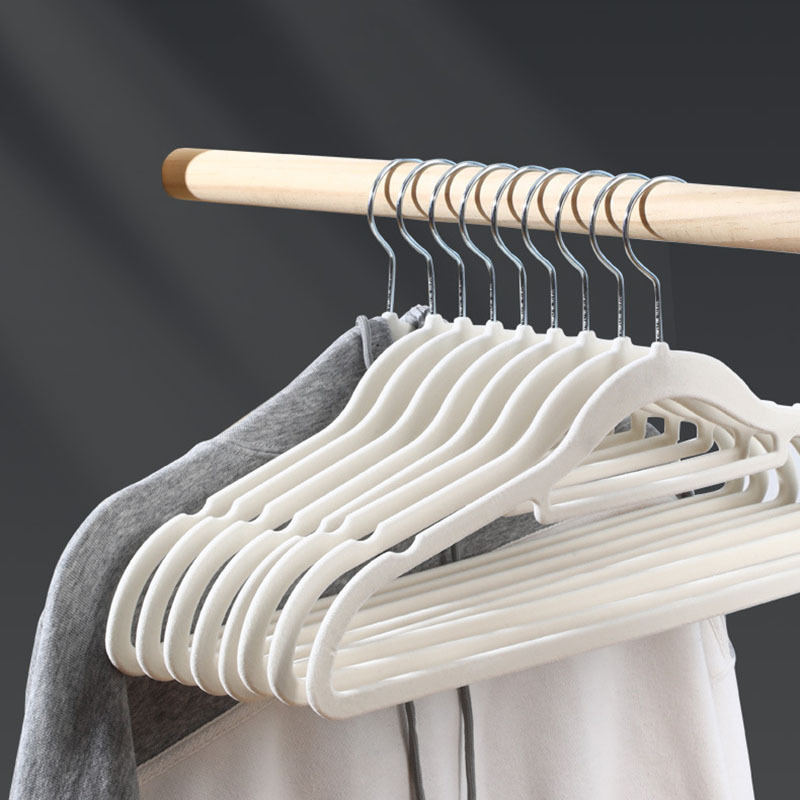 加厚植绒衣架家用防滑无痕绒面日式女士衣柜衣挂38cm塑料可旋转