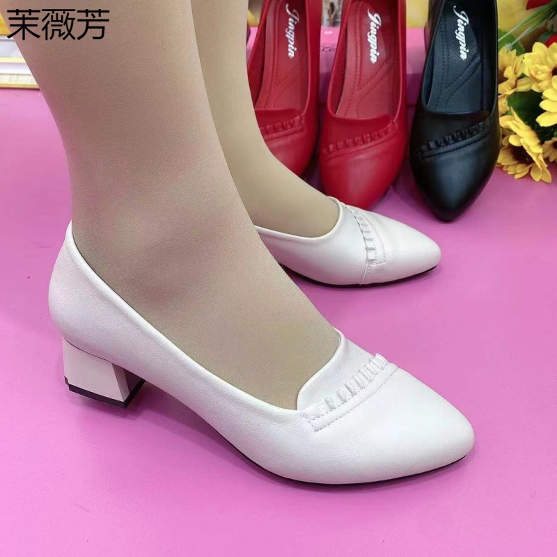 低跟浅口单鞋女春天气质中老年粗跟妈妈鞋中跟正装女士皮鞋工作鞋
