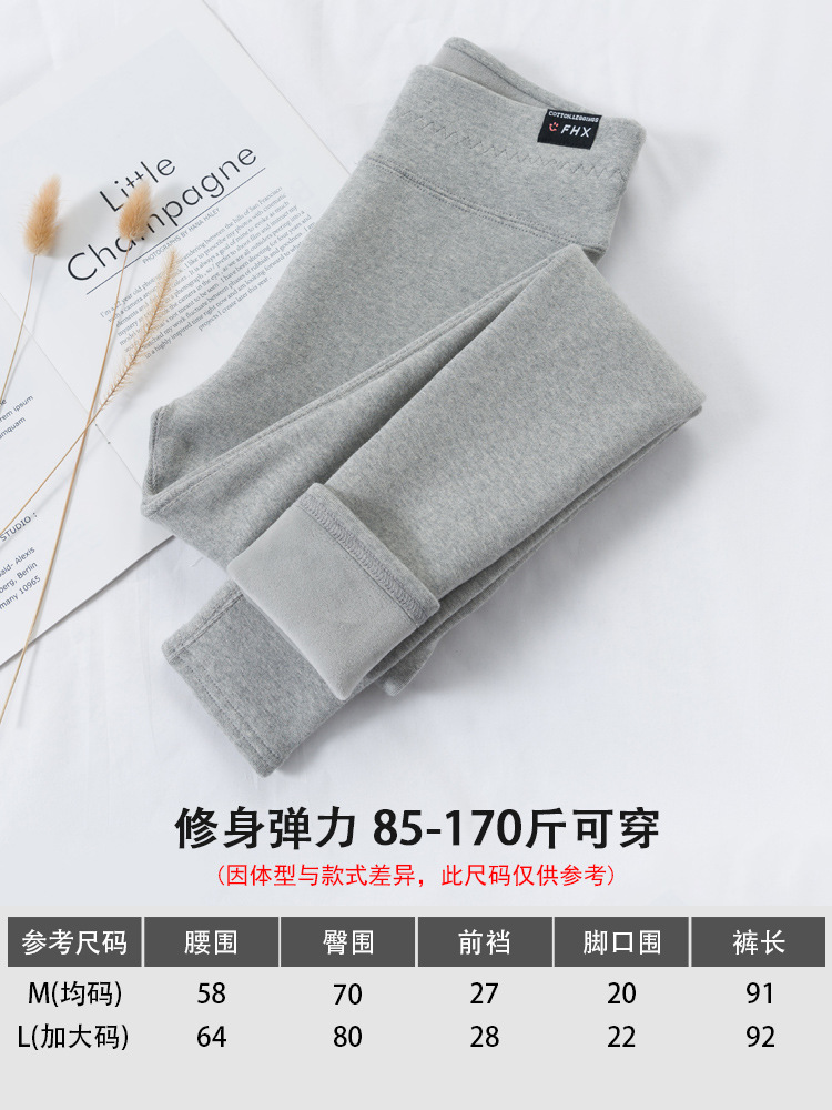 打底裤女秋冬棉裤纯棉一体保暖裤子紧身灰色弹力高腰外穿加绒加厚