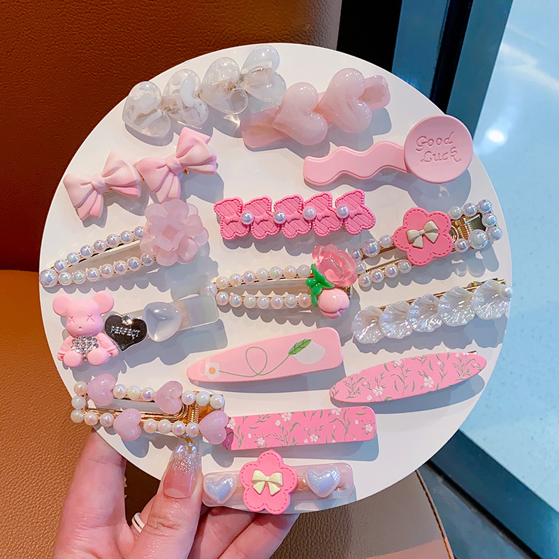 可爱粉色花卡通发夹小女孩新款女童碎发侧边刘海发卡夹子头饰发饰