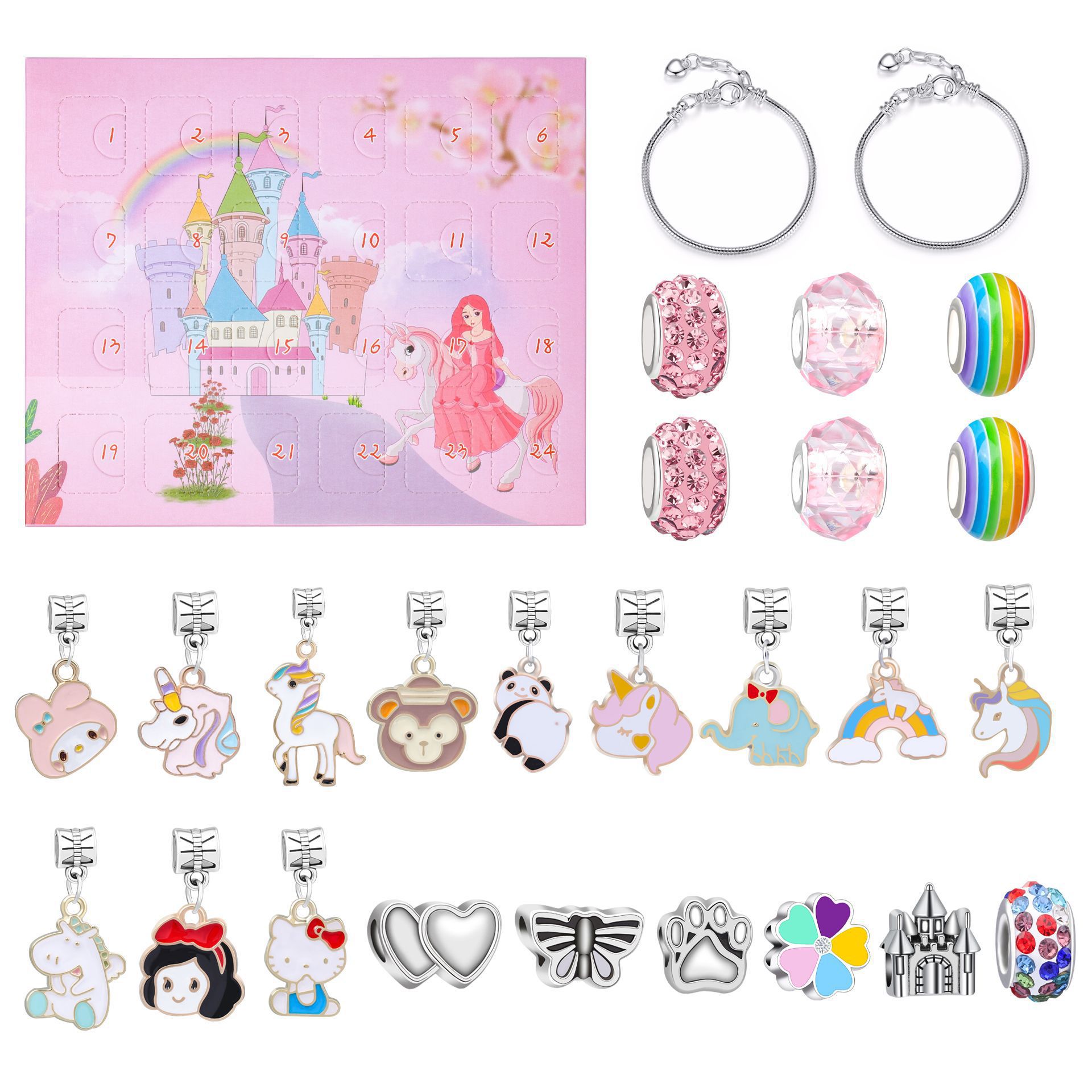 亚马逊新款粉色卡通24pcs城堡手链盲盒diy儿童饰品创意彩珠礼盒