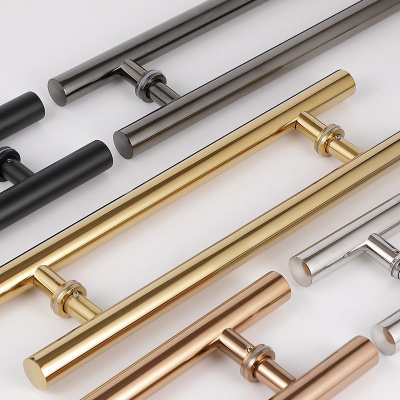 玻璃门拉手不锈钢玫瑰黑钛金色有无框对装推拉地弹木门KTV门把手