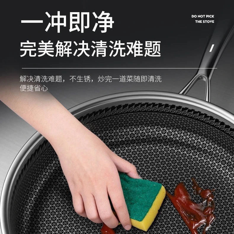 316不锈钢炒锅 不粘锅 无涂层 家用 炒菜锅平底 电磁炉燃气通用锅