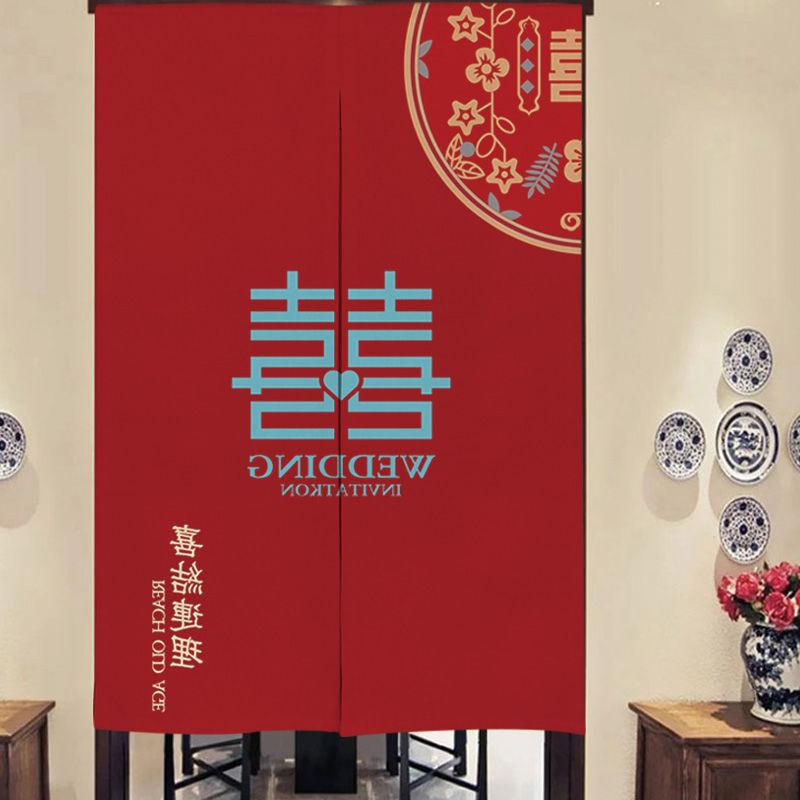 结婚门帘 婚房门布艺红色喜字门帘 卧室免打孔隔断挂门帘婚庆帘子
