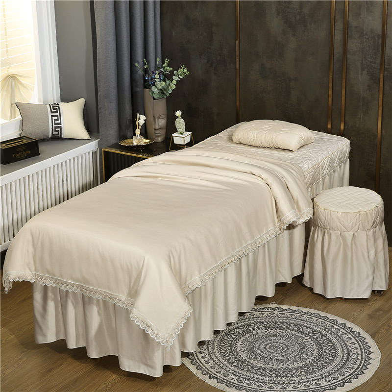 天丝莫代尔刺绣花边款美容床罩四件套高档欧式美容床按摩理疗专用