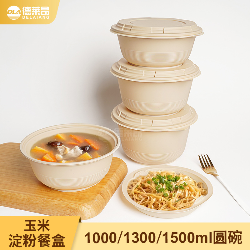 圆形打包盒批发一次性餐盒可降解快餐盒粥粉面干湿分离外卖包装盒