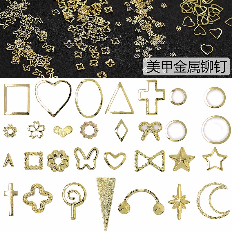 新款美甲空心铆钉饰品批发金属装饰指甲配饰星月配件抖音爆款产品