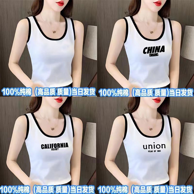 棉质无袖吊带背心女款夏季外穿紧身辣妹白色内搭字母潮流运动上衣