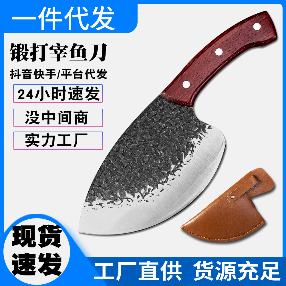 锤纹锻打杀鱼刀专业开背片生鱼斩鸡鸭鹅排骨切宰削剖剁鱼刀剔骨刀