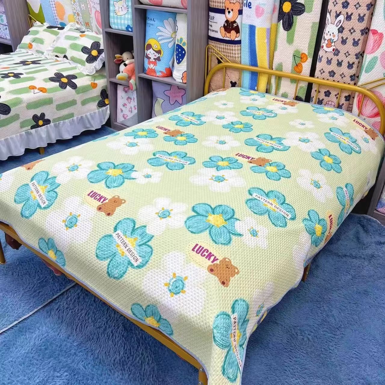 三层夹棉双面华夫格床盖四季通用1.95米*2.25米双人床单卡通图案