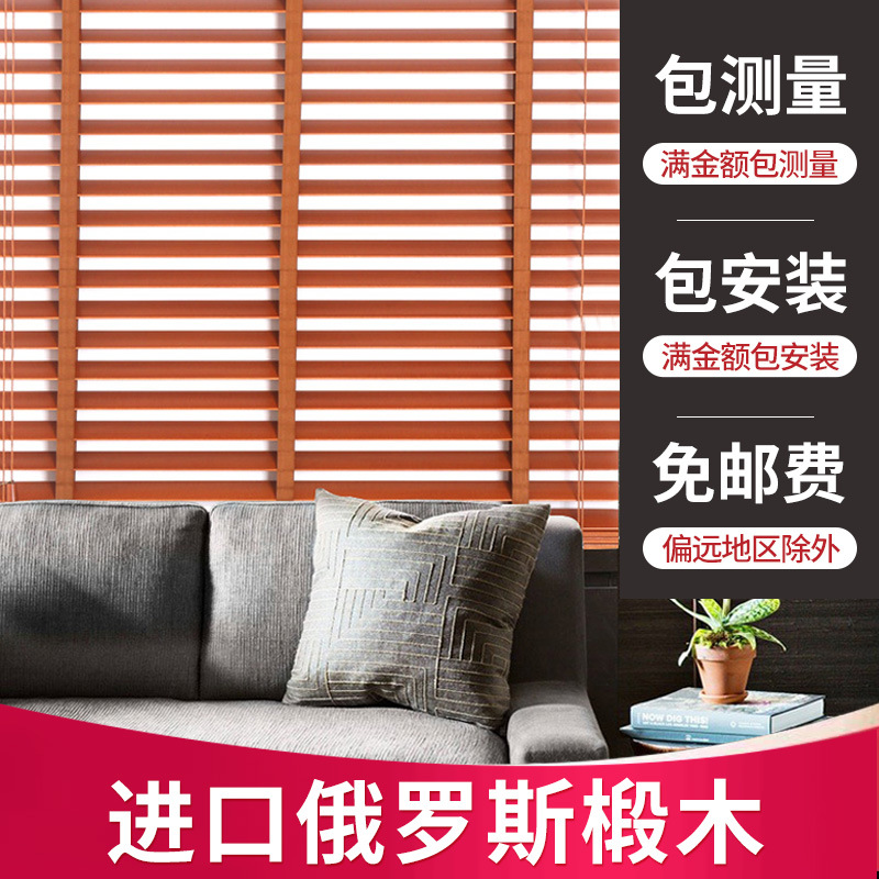 实木百叶窗帘家用书房客厅办公室卷帘卧室中式遮光升降木质百页窗