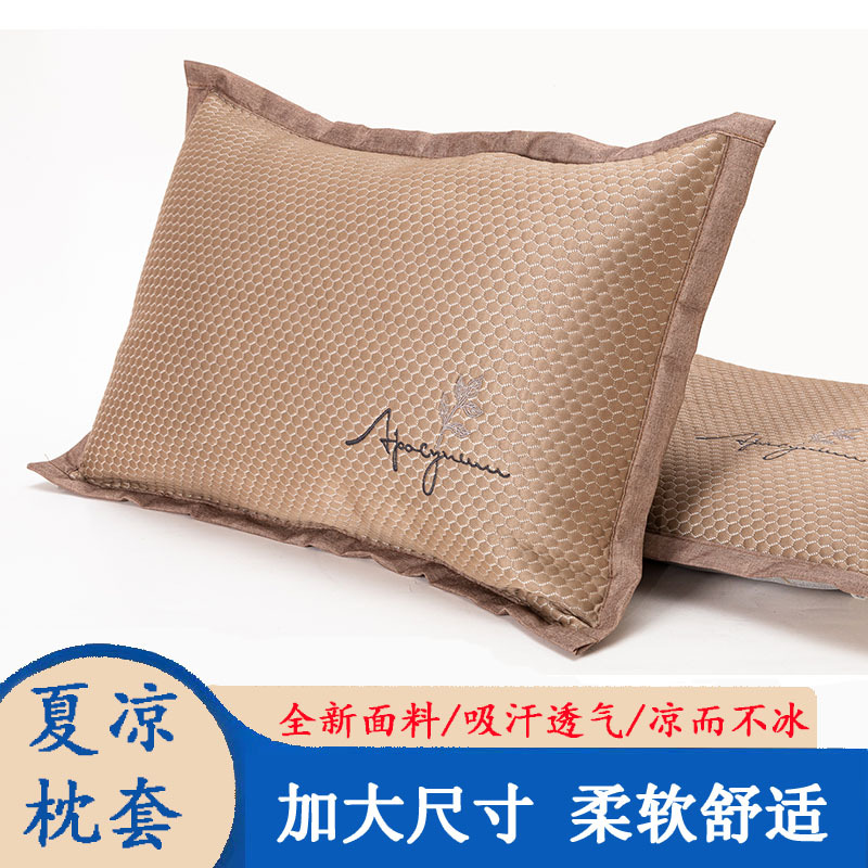 夏季新款加大豆豆席凉感绣花夏凉枕套批发冰丝枕头套透气竹藤枕套