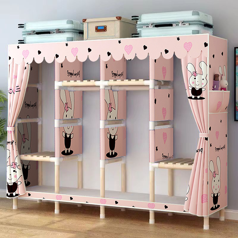 衣柜出租房用实木布衣柜子家用卧室简易组装牛津布衣橱单双人收纳