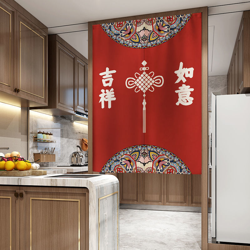 大红色门帘隔断帘中式风简易吉祥挂帘家用客厅玄关半截布帘子