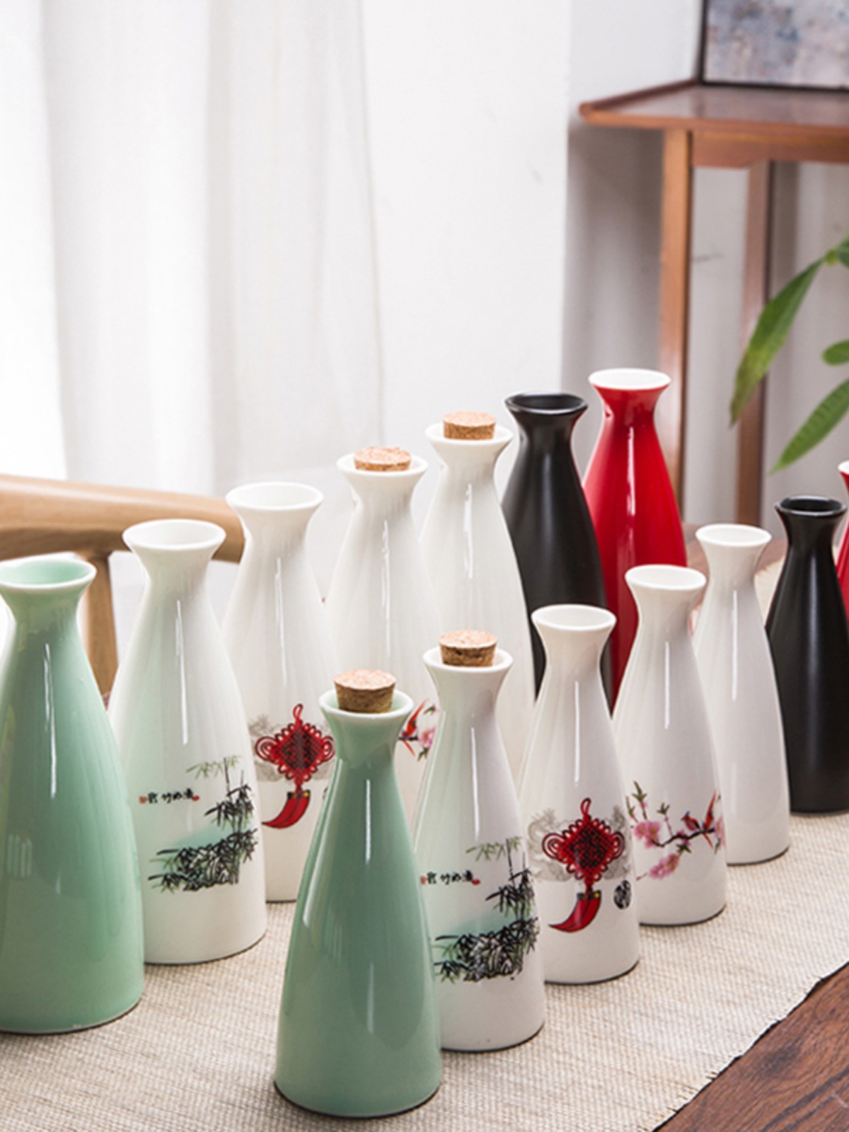 陶瓷小酒壶家用复古分酒器老式二两圆口清酒具白酒杯套装酒瓶