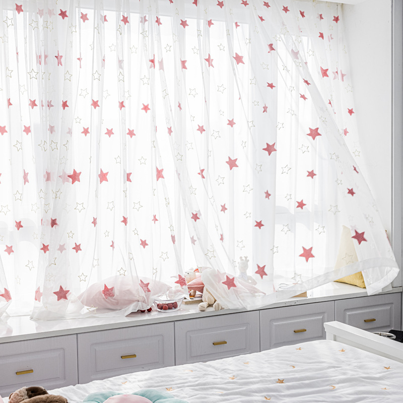 粉色星星飘窗窗帘卧室新款女孩儿童房窗帘纱阳台客厅纱帘短帘