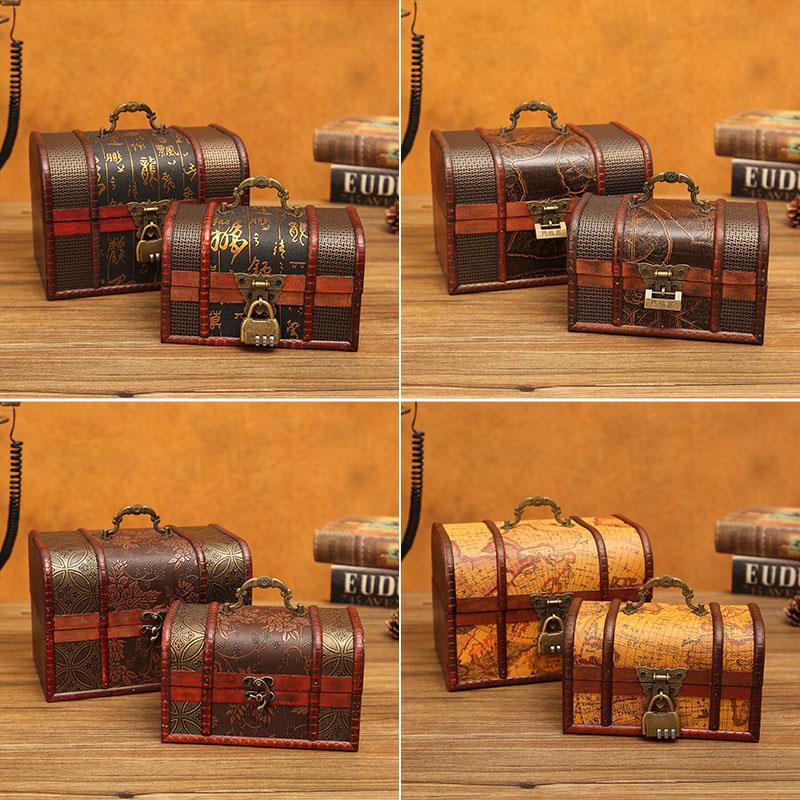 木质复古儿童宝藏百宝箱收纳盒带锁密码盒首饰盒小箱子木盒子