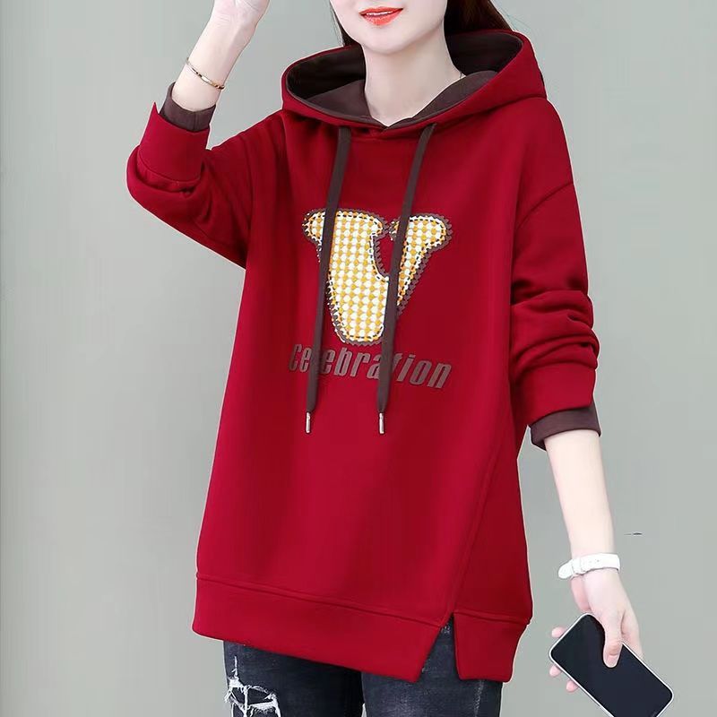 大码加绒加厚女士卫衣冬季2022年新款洋气连帽假两件外套女潮