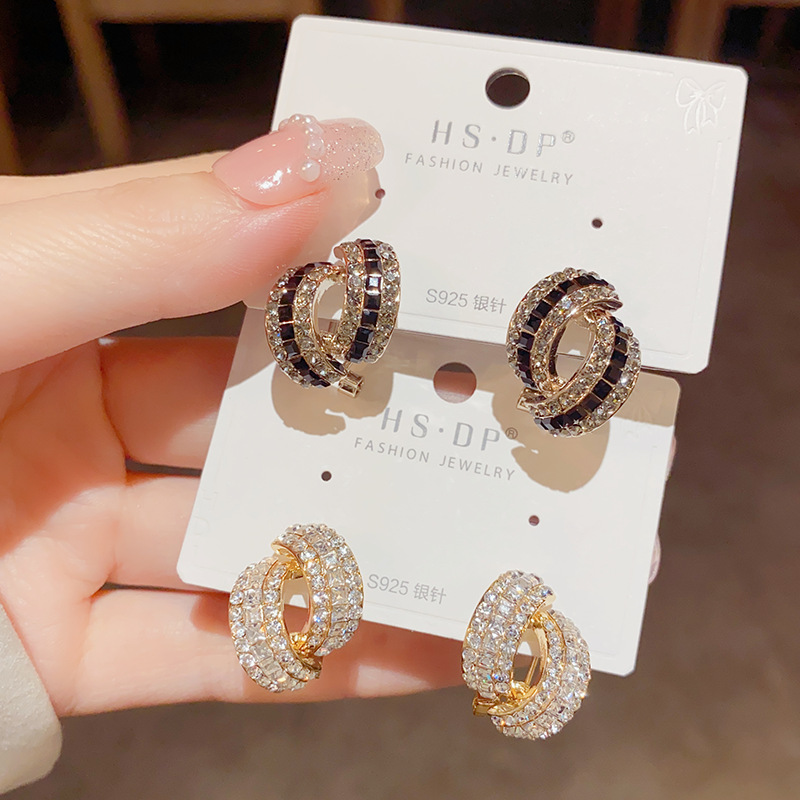 东大门 韩式轻奢精致满钻弹扣耳针女 s925银针时尚高级感气质耳环