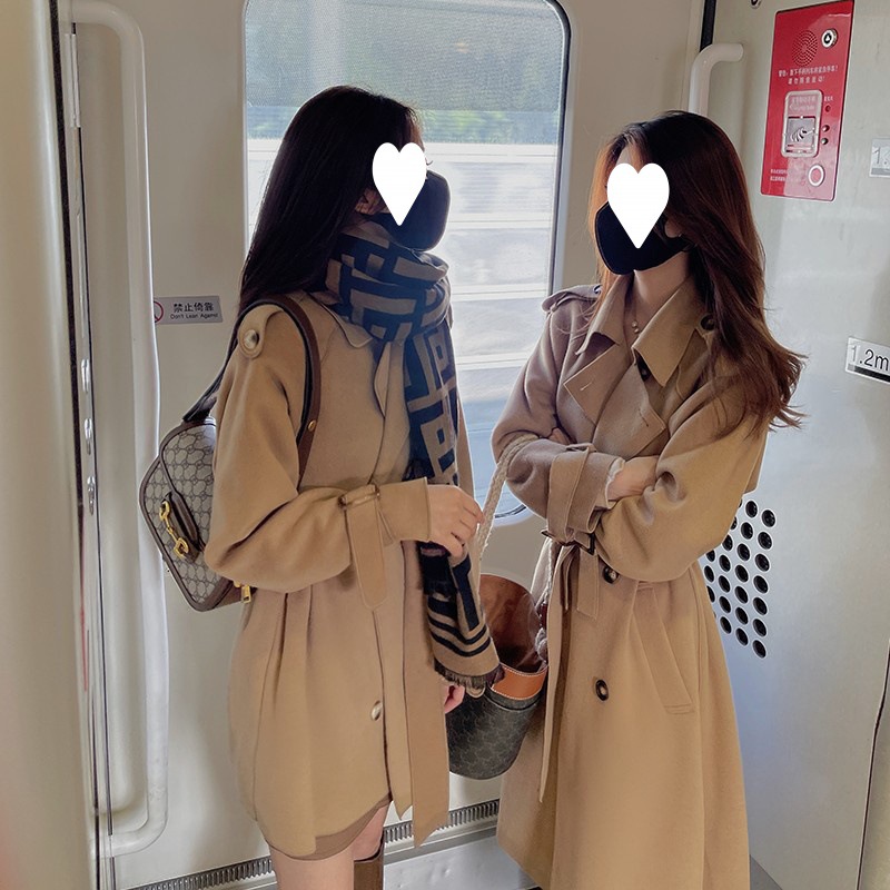 反季清仓双面羊绒大衣女长款过膝腰带修身新款气质黑色双面呢羊毛