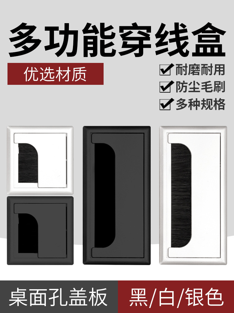 办公桌穿线孔盖板桌面过线装饰盖电脑桌方形穿线盒书桌毛刷线孔盖