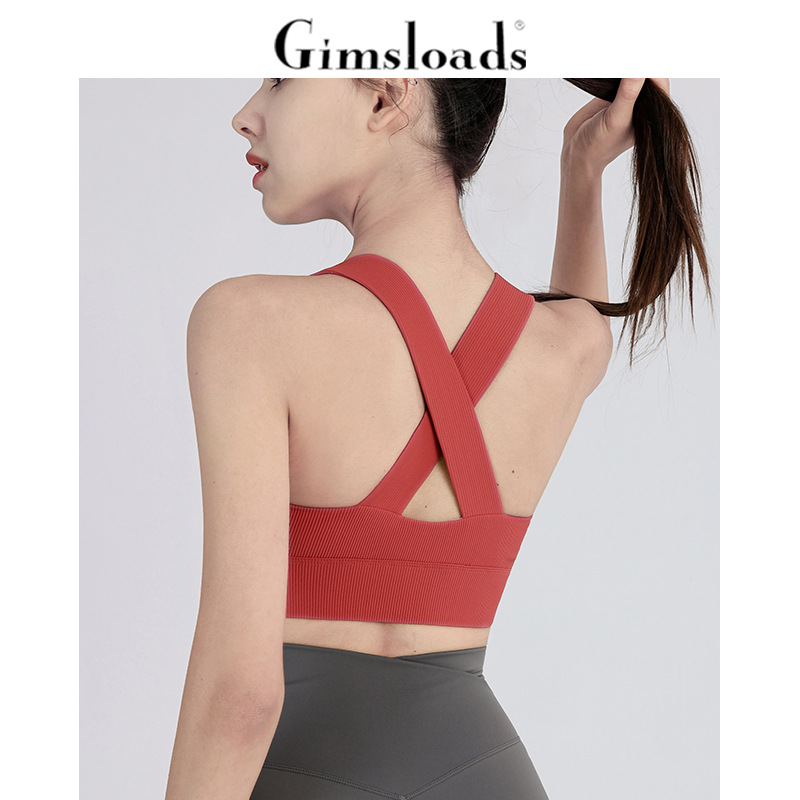 欧美罗纹交叉美背运动内衣女防震聚拢跑步健身背心外穿瑜伽文胸