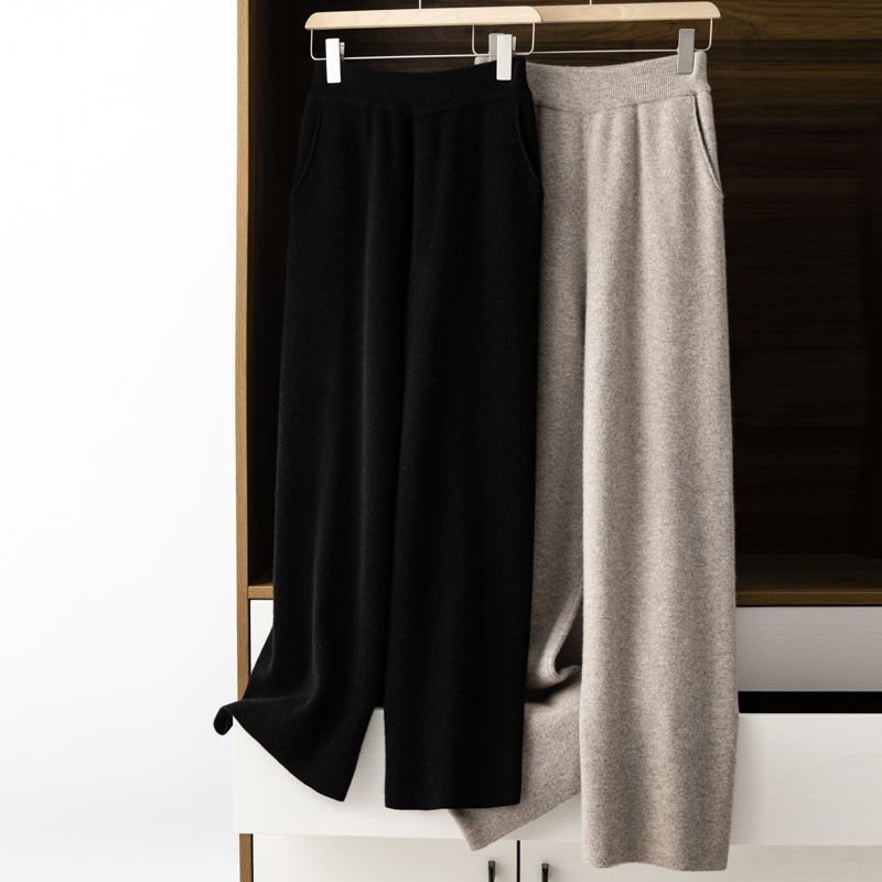 羊绒裤子女阔腿裤秋冬针织裤女带兜高腰垂感显瘦修身小个子正装裤