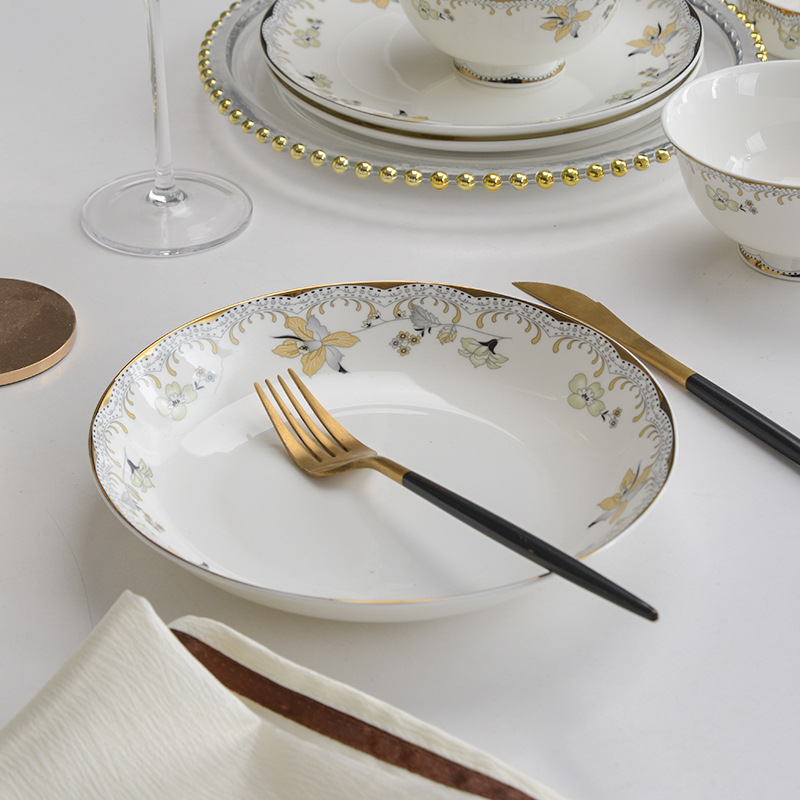 新款骨瓷碗碟家用高端法式轻奢乔迁餐具套装单个陶瓷碗盘