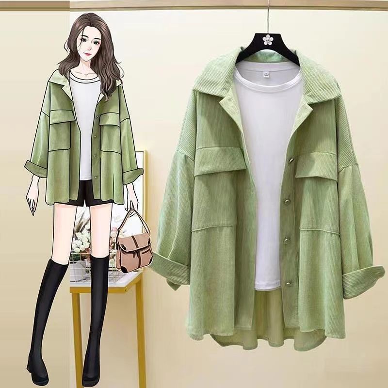 灯芯绒衬衫女复古外套春秋新款长袖宽松韩版显瘦设计感女衬衣跨境
