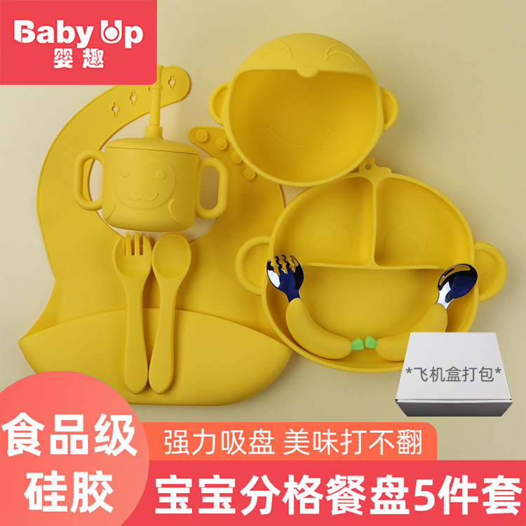 跨境热卖母婴儿童餐盘硅胶口水兜宝宝辅食碗儿童叉勺宝宝餐具套装