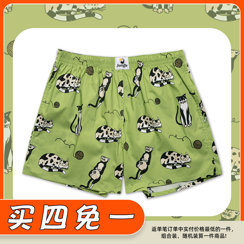 阿罗情侣卡通男生宽松平四角男士内裤裤男纯棉家居短裤睡裤夏季女
