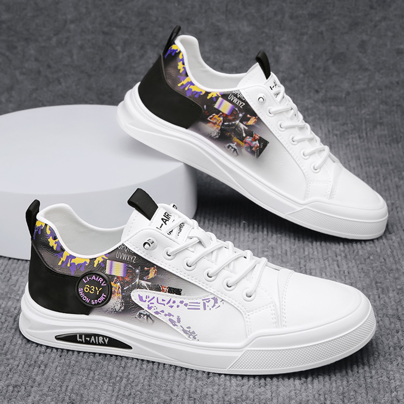 小白韩版皮鞋防水春季板鞋皮面百搭休闲低帮潮流男鞋鞋男2023新款