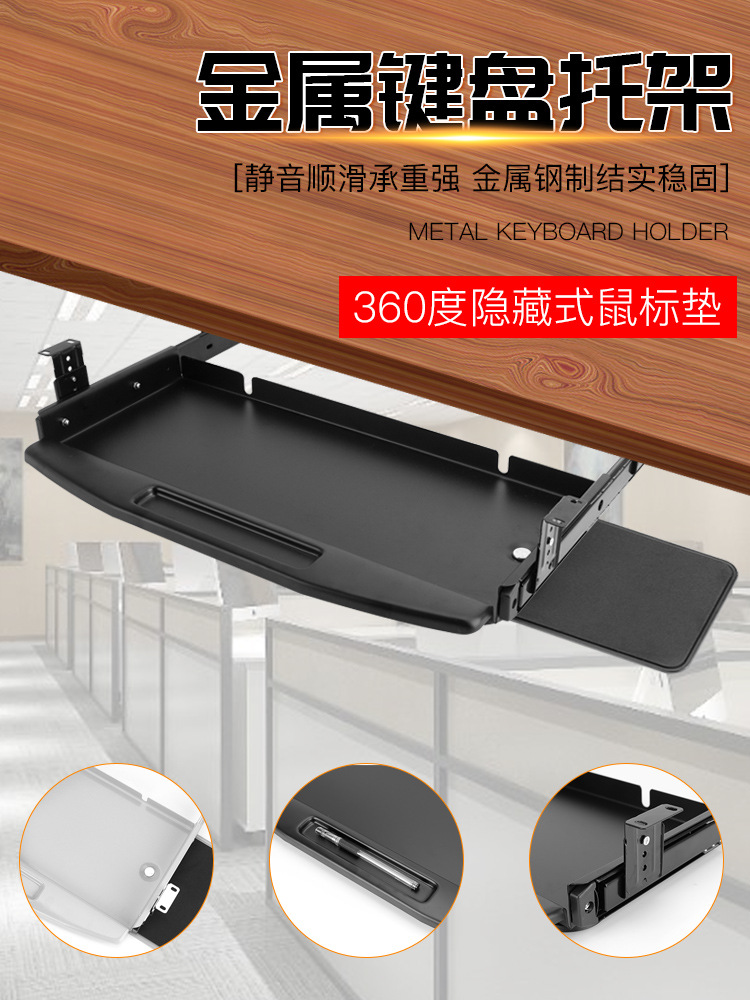 办公桌电脑托盘架钢制金属键盘托架旋转鼠标键盘推拉托架支撑轨道