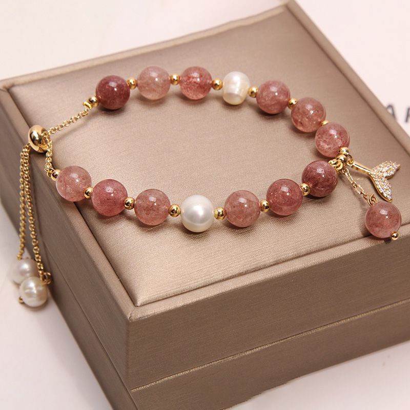 莓晶手链淡水珍珠女招桃花运鱼尾手串珠送闺蜜可抽拉代发代销