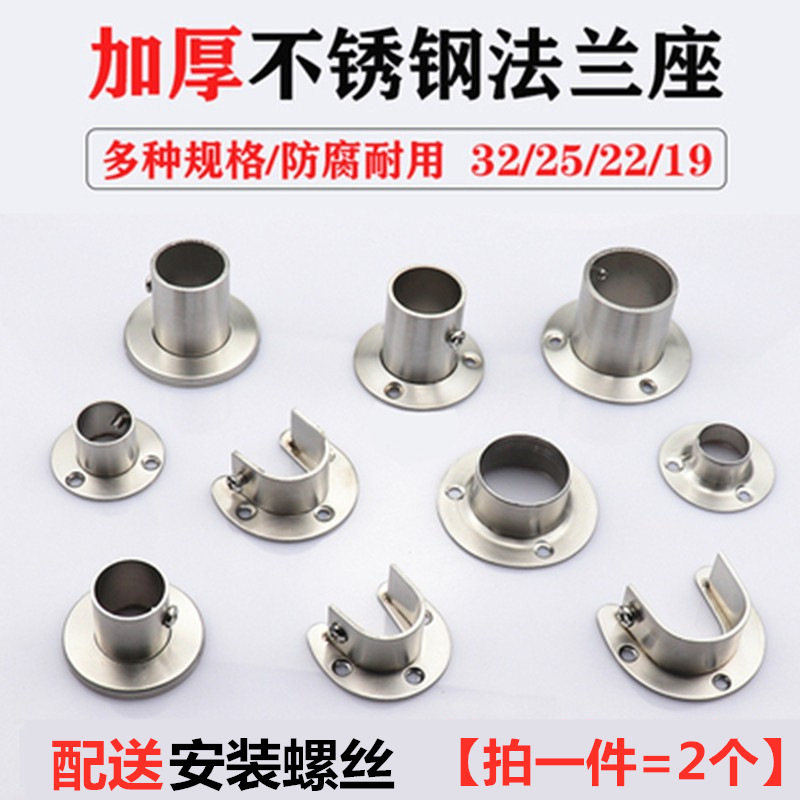 不锈钢法兰座衣柜挂衣杆托毛巾杆底座晾衣架家用圆管固定配件管座