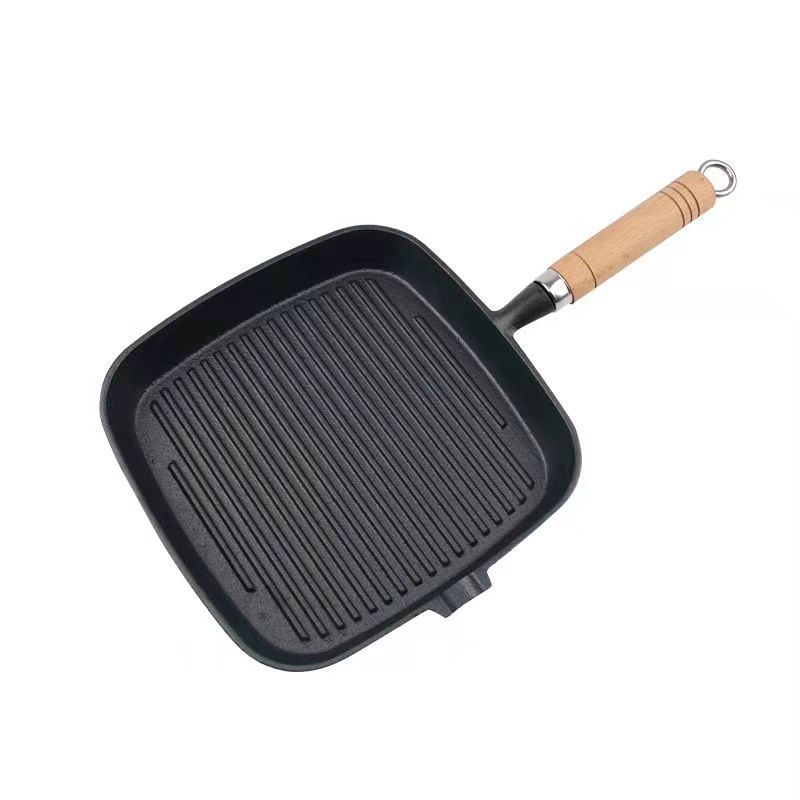 22厘米木柄加厚铸铁煎锅平底锅煎牛排专用锅西餐厅煎鱼烤虾烧烤锅