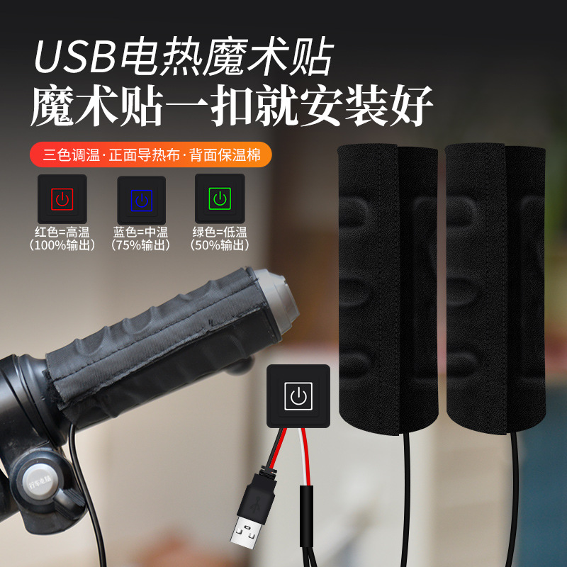 USB电动车加热车把手套发热保暖车把套摩托车电瓶车护手电热把套