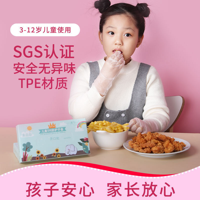 厂家供货 儿童加厚一次性手套学生餐饮食品级TPE幼儿园透明手套