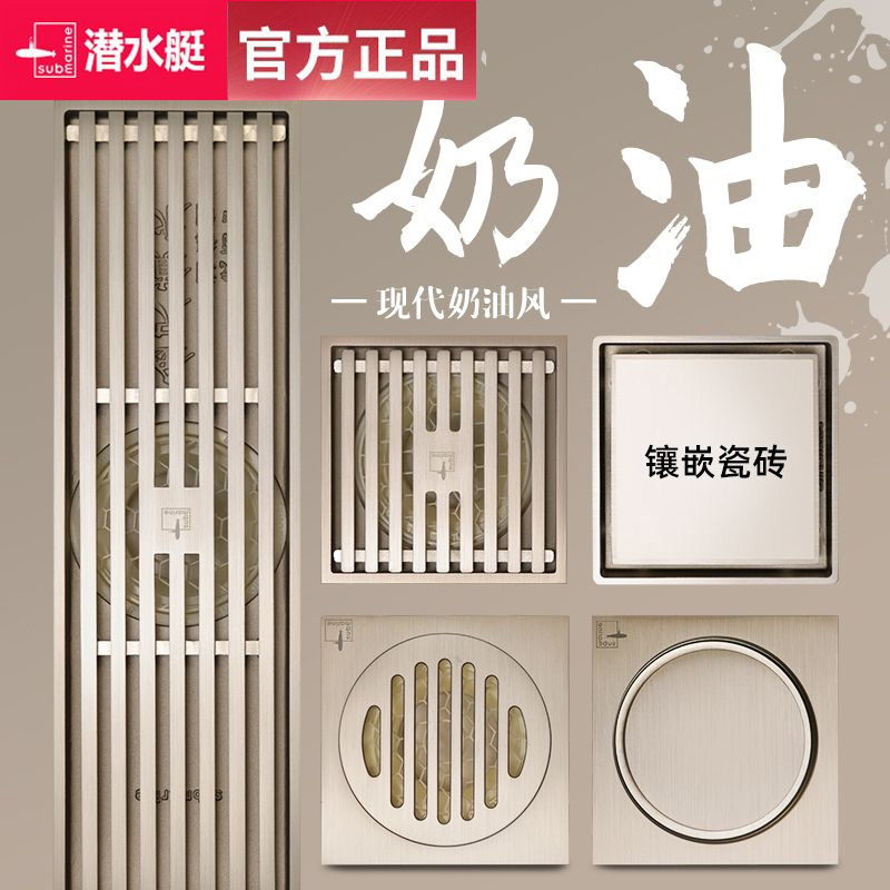潜水艇地漏奶油风全铜亚银拉丝地漏洗衣机淋浴防臭防虫防返水地漏