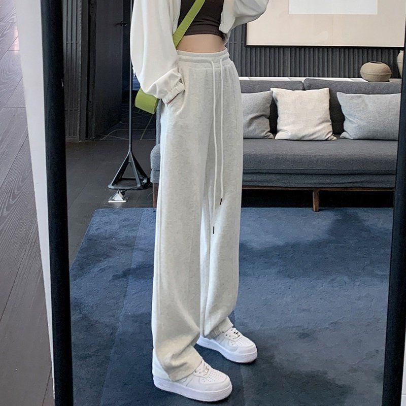 灰色卫裤女春秋直筒休闲裤子长裤年新款秋冬阔腿裤美式运动裤