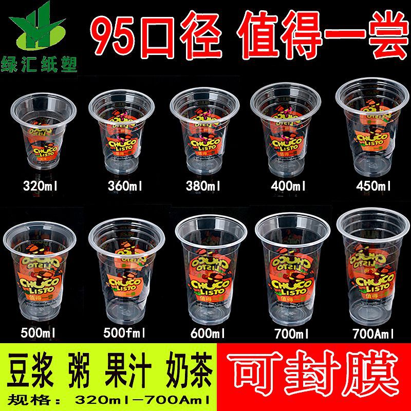 一次性塑料奶茶杯子95口径封口带盖豆浆果汁粥商用耐高温打包外卖