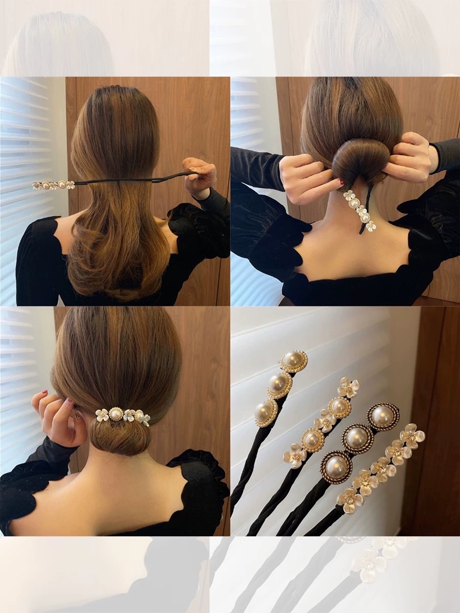网红仙女珍珠懒人盘发器韩版花朵丸子头蓬松造型贝壳头饰超仙头饰