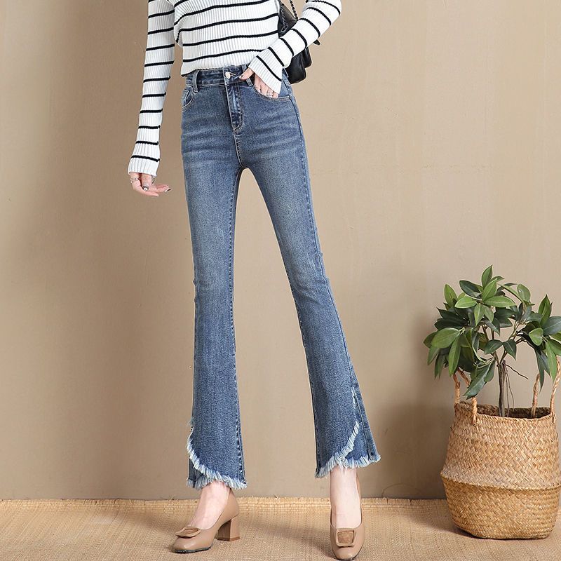 微喇牛仔裤女宽松直筒2023春装新款高腰修身显瘦毛边喇叭长裤子潮