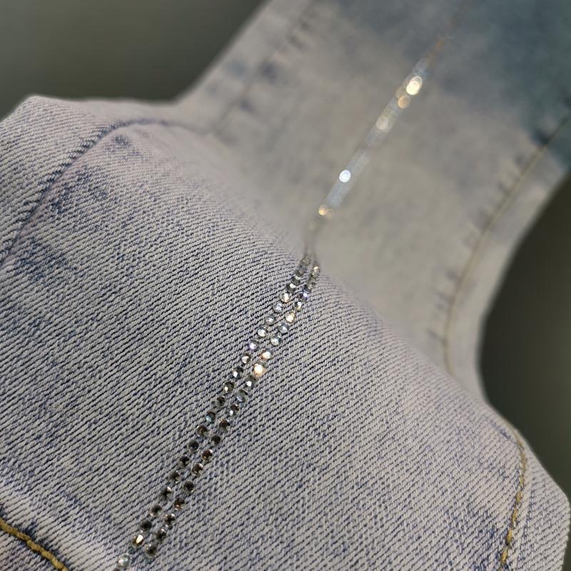 ins欧货烫钻牛仔裤女潮2023秋冬装新款高腰显瘦紧身小脚裤铅笔裤